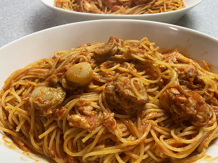 鯛とホタテのアラビアータパスタ&鯛めし♪