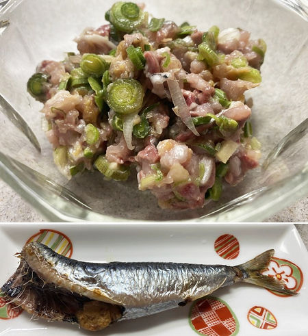ミョウガタケを入れてイワシのなめろう&イワシの塩焼き♪
