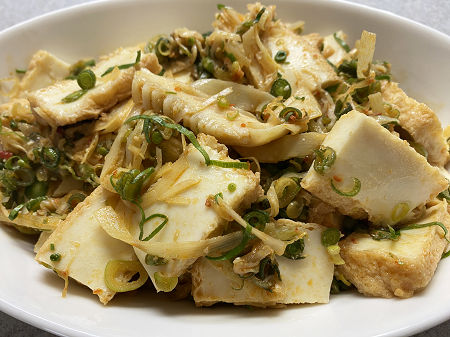 厚揚げとミョウガタケのピリ辛味噌和え&庭のツツジ♪